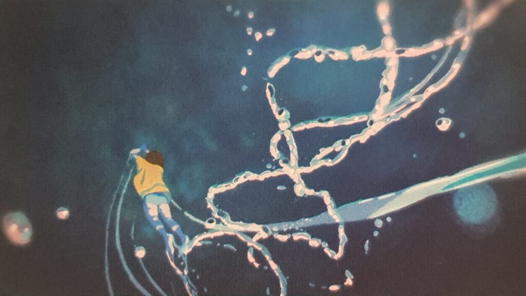 空に咲く花火の火の粉(種)が水に”移る”ことで生命が宿った、これは草花の受粉や生き物の授精すべてに当てはまること。