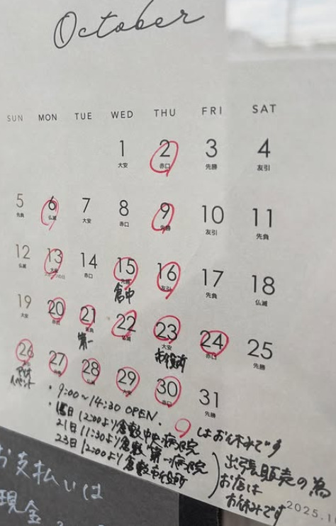 open | 9:00~14:30(売切れ閉店) 8:00~14:30(7月) |